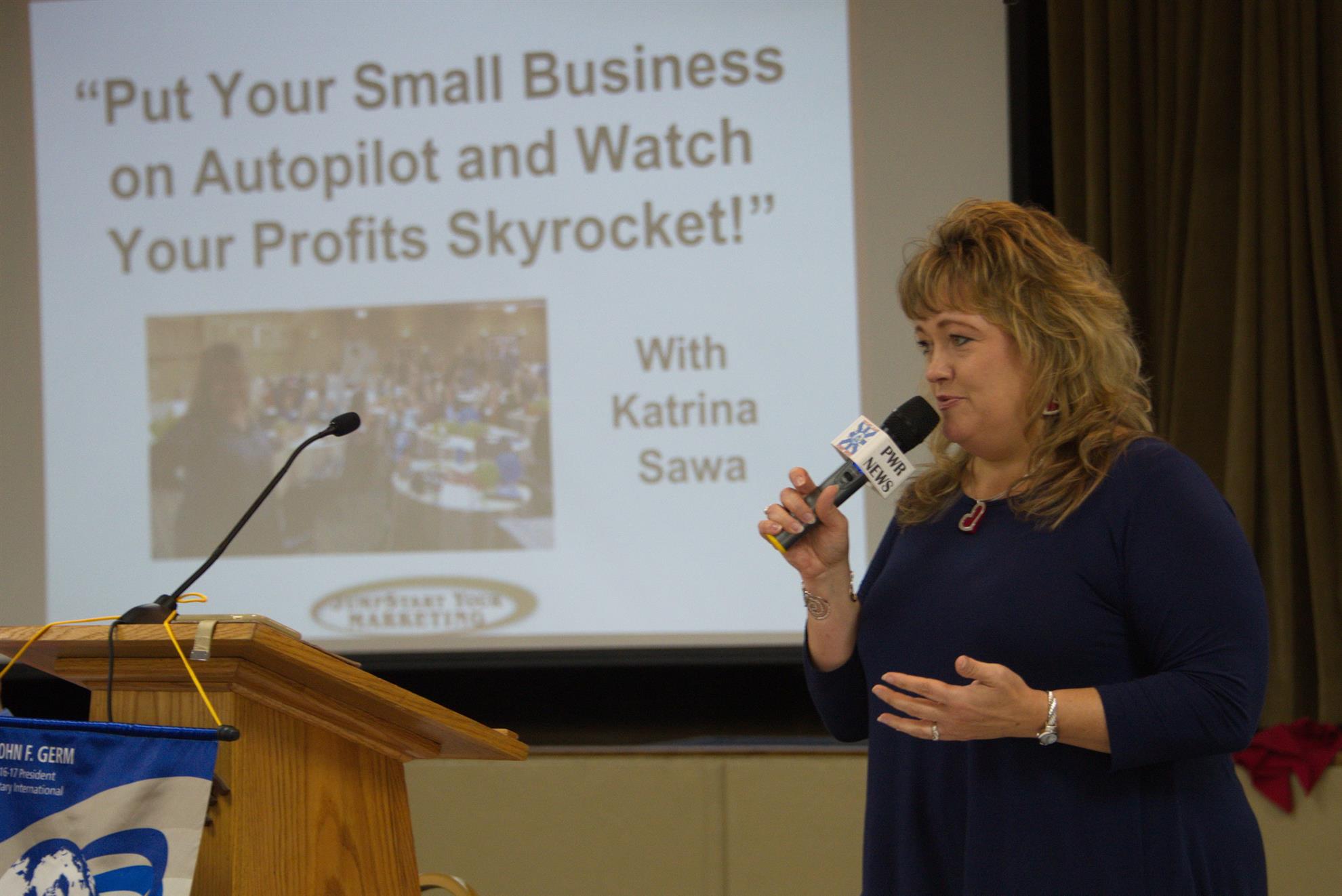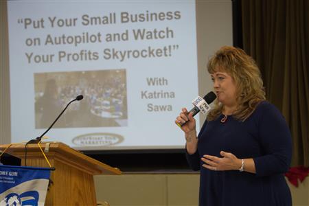 Our speaker is Katrina Sawa, business coach and marketing guru.