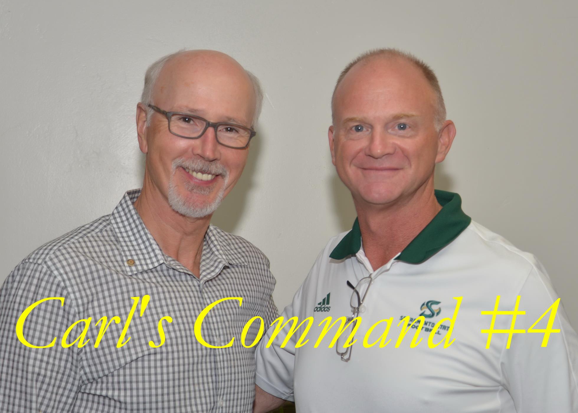 Carl's Command #4 Special Paul Harris Fellowship is given. Announcing a new meeting palce coming up this fall. Our speaker is Jody Sears, head football coach at CSUS