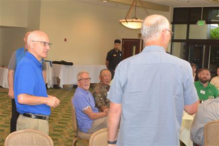 The 34th meeting in President Mary Lyn's term is presided over by Larry Challis while the pres, PE and PEE are at the RI convention.