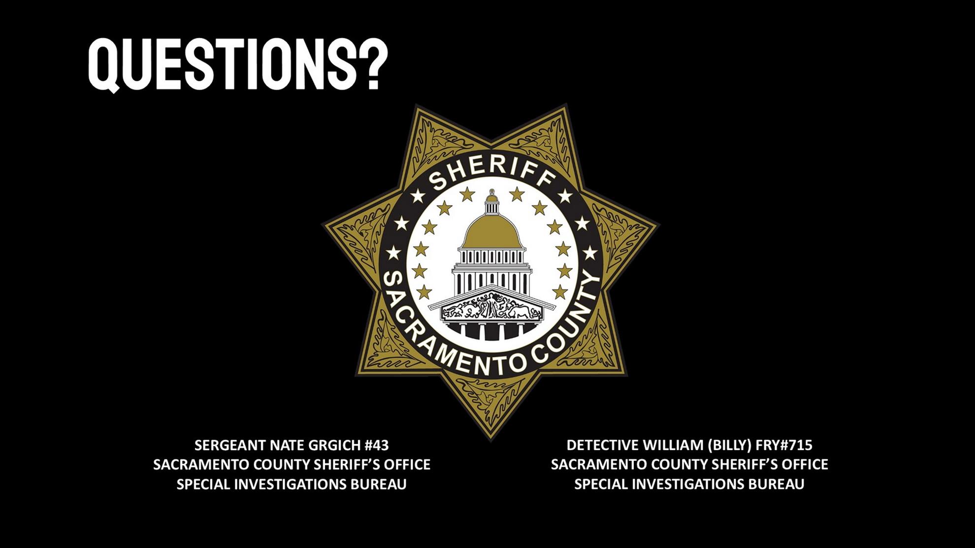 Beth Schatz introduces our speakers Nate Grgich and William Ray from the Spoecial Investigations Bureau of the Sacramento Sheriffs Office.